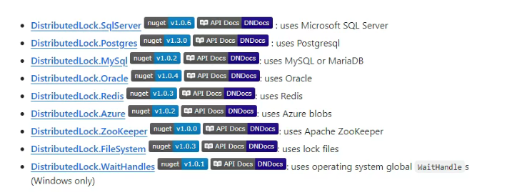 GitHub开源地址:https://github.com/madelson/DistributedLock