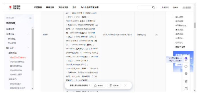 | filter | 检索过滤条件。当scope取值为2时,可以设置filter进行排序。industry_type:行业类型,注意:设置该字段可提高检索速度和过滤精度,取值有: hotel(宾馆);cater(餐饮);life(生活娱乐) sort_name:排序字段,根据industry_type字段的值而定。 1、industry_type为hotel时,sort_name取值有: default(默认);price(价格);total_score(好评);level(星级);health_score(卫生);distance(距离排序,需结合center字段一起使用) 2、industry_type为cater时,sort_name取值有: default(默认);taste_rating(口味);price(价格);overall_rating(好评);service_rating(服务);distance(距离排序,需结合center字段一起使用) 3、industry_type为life时,sort_name取值有: default(默认);price(价格);overall_rating(好评);comment_num(服务);distance(距离排序,需结合center字段一起使用)sort_rule:排序规则:0(从高到低),1(从低到高)price_section:价格区间groupon:是否有团购:1(有),0(无)discount:是否有打折:1(有),0(无) | sort_name:distance|sort_rule:1 | string(50) | 否 |