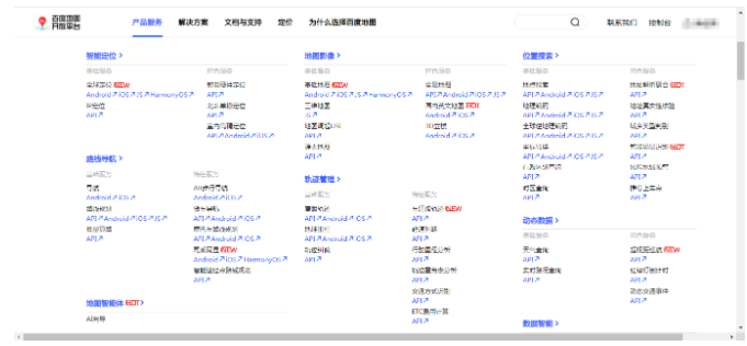 关于百度地图提供的服务接口有很多,这里有一个总的入口可以粗略的看一下: