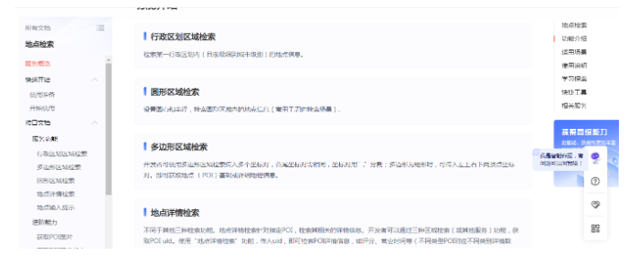 以地点搜索API为例,地点搜索包含以下几种地点规则,分别市行政区划区域检索,圆形区域检索,多边形检索,地点详情检索,地点输入提示,POI图片获取以及获取POI的营业状态。