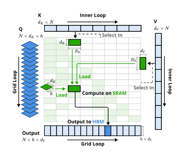- 自定义 Triton 内核实现 SRAM 上的块级计算,避免频繁的 HBM 数据交互
