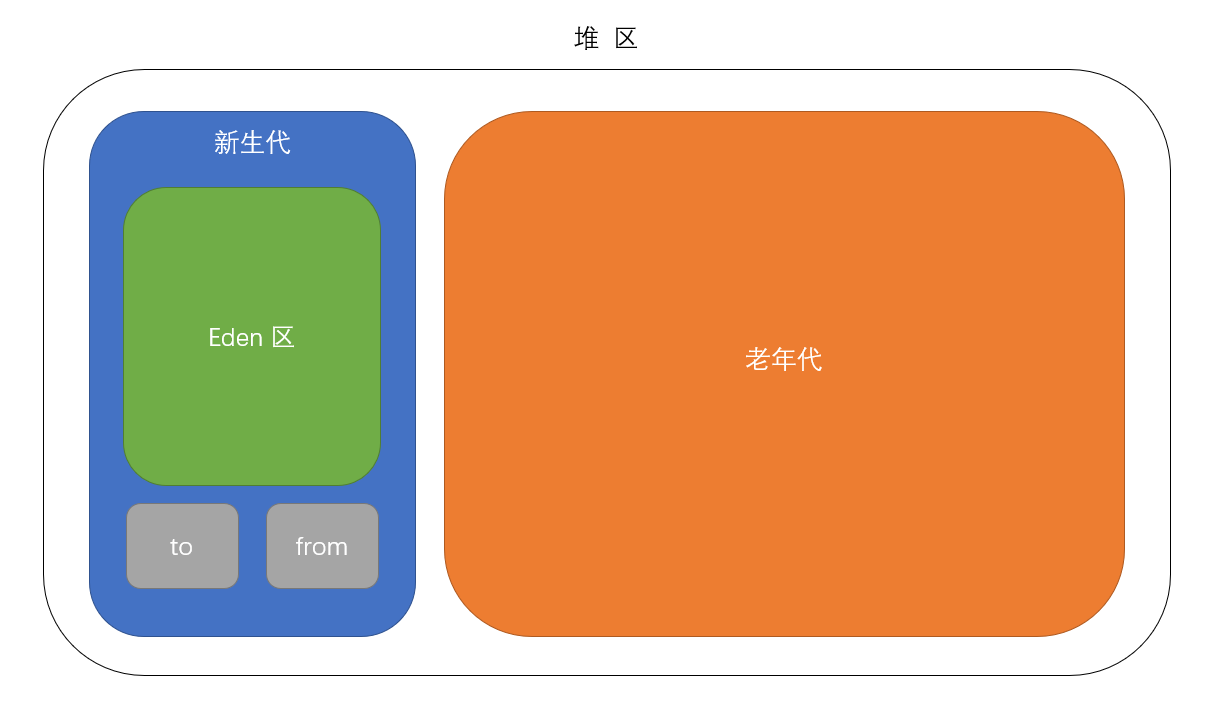 survive 区分为 from 区和 to 区两块大小相等的内存空间。Minor GC 执行时,会将 eden 区和 from 区中的存活对象复制到 to 区,清除 eden 区和 from 区内存。再把这些存活对象从 to 区移动回 from 区。