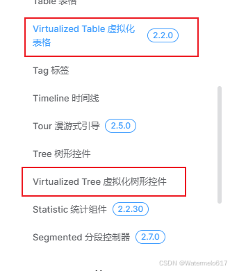 此外,element plus也提供了虚拟化组件,用来处理海量数据的渲染问题