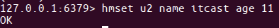 u2的属性name为itcast、属性age为11hmset u2 name itcast age 11