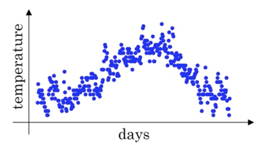 假设给定一个序列,例如北京一年每天的气温值,图中蓝色的点代表真实数据。