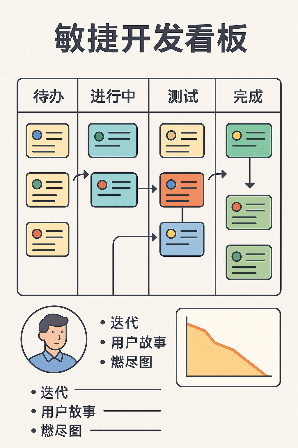 敏捷开发是一种强调快速响应变化、持续交付价值的软件开发方法。相比传统“瀑布式”开发,敏捷方法通过小步迭代、频繁沟通和可视化工具,帮助团队更加灵活、高效地交付产品。