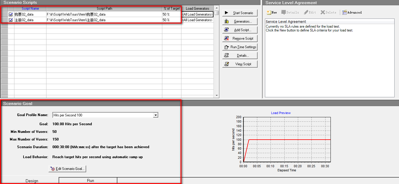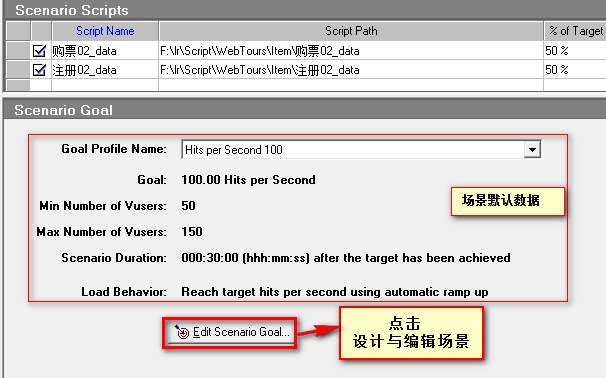 目标场景设计就是定义要实现的【测试目标】,LR会根据根据这些目标自动构建场景。