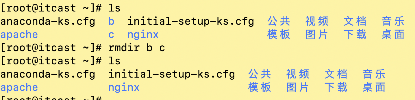 作用:首先删除子目录,删除成功后,删除上级目录,直至结束