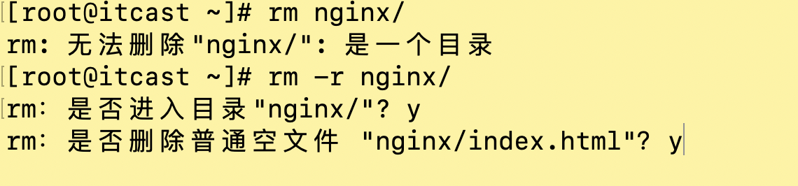 -f:强制删除,不提示任何信息。操作前要慎重!