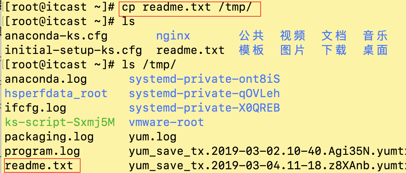 示例代码1:复制/root/readme.txt 到 /tmp目录下