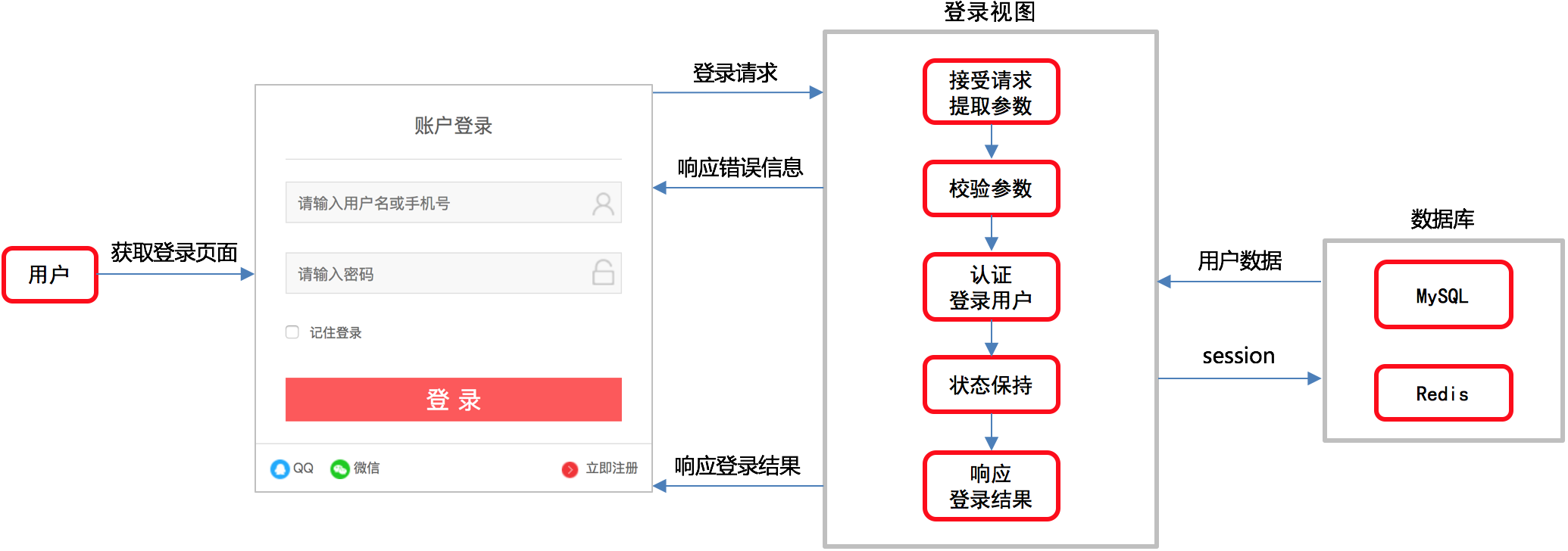 | 登录失败 | 响应错误提示 |