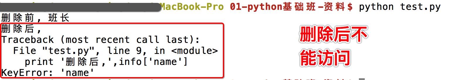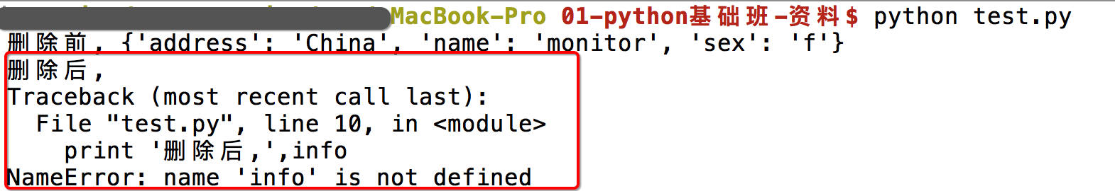 print('删除前,%s'%info['name'])