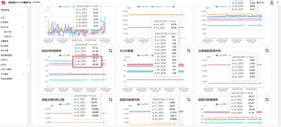 tpops监控大盘动态内存单节点使用率99.83