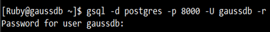 gsql -d postgres -p 8000 -U user -r