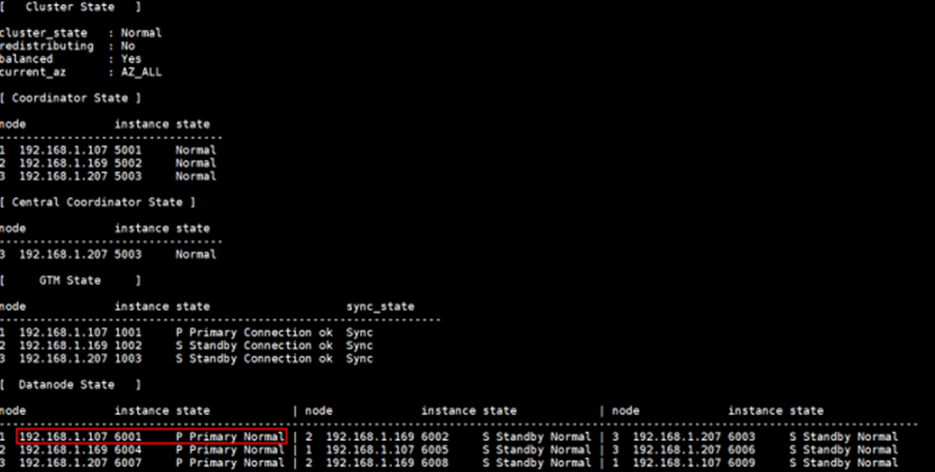 2. 执行命令,查询集群状态,确认当前节点的主DN。