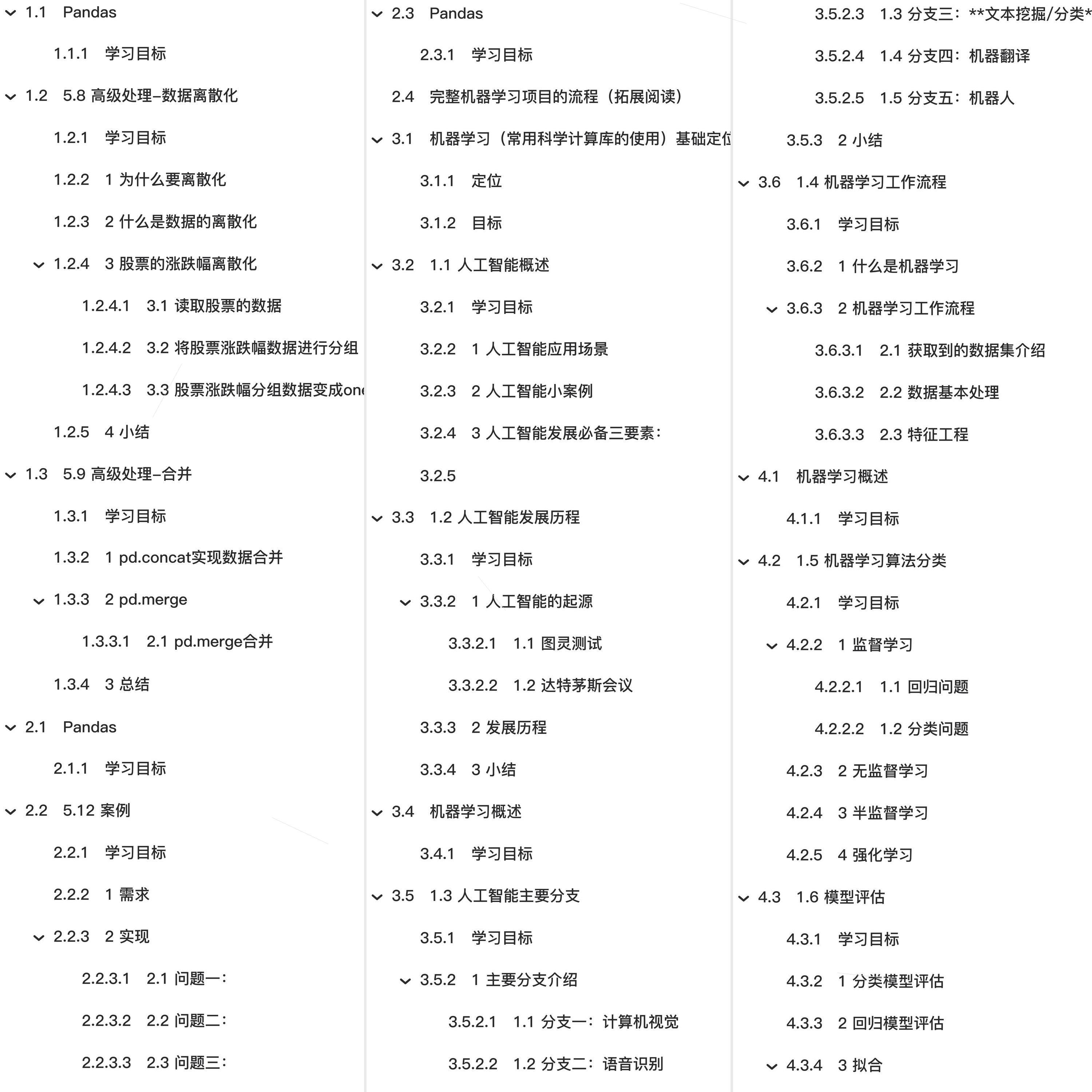 🏆🏆🏆教程全知识点简介:1.机器学习常用科学计算库包括基础定位、目标。2. 人工智能概述涵盖人工智能应用场景、人工智能小案例、人工智能发展必备三要素、人工智能机器学习和深度学习。3. 机器学习概述包括机器学习工作流程、什么是机器学习、模型评估(回归模型评估、拟合)、Azure机器学习模型搭建、完整机器学习项目流程。4. 机器学习基础环境安装与使用包括Jupyter Notebook使用(一级标题、Jupyter Notebook中自动补全代码等相关功能拓展)。5. Matplotlib可视化涵盖Matplotlib HelloWorld(什么是Matplotlib、实现简单Matplotlib画图折线图、画出温度变化图、准备数据、创建画布、绘制折线图、显示图像、构造x轴刻度标签、修改坐标刻度显示、设置中文字体、设置正常显示符号、保存图片)、添加坐标轴刻度、添加网格显示、添加描述信息、图像保存、设置图形风格、常见图形绘制(常见图形种类意义、散点图绘制)。6. Numpy包括Numpy优势、N维数组ndarray(ndarray属性)、基本操作(生成数组方法、生成0和1数组、从现有数组生成、创建符合正态分布stock涨跌幅数据)、数组间运算(数组与数的运算)。7. Pandas数据结构包括Series、DataFrame。8. 文件读取与存储涵盖CSV(read_csv)、HDF(read_hdf与to_hdf)、JSON(read_josn)。9. 高级处理数据离散化包括为什么要离散化、什么是数据离散化、stock涨跌幅离散化(读取stock数据、将stock涨跌幅数据进行分组、stock涨跌幅分组数据变成one_hot编码)、案例实现。