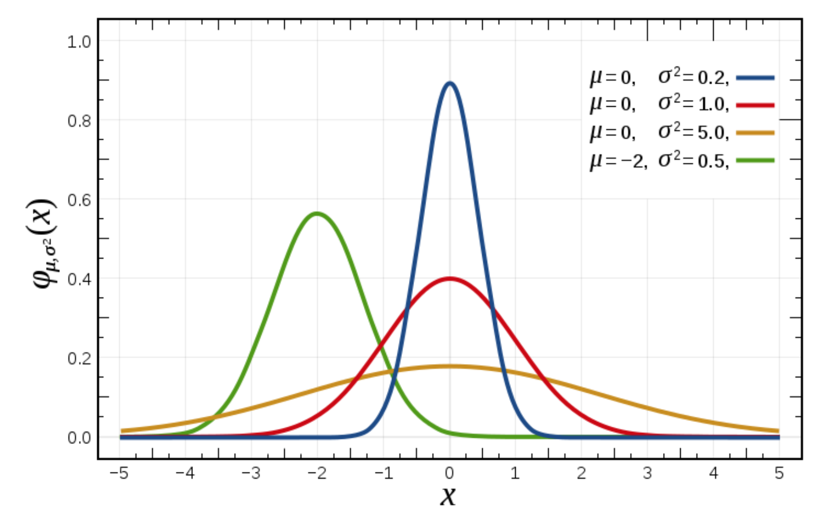 μ决定了其位置,其标准差σ决定了分布的幅度。当μ = 0,σ = 1时的正态分布是标准正态分布。