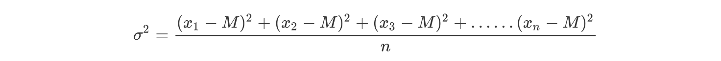 其中M为平均值,n为数据总个数,σ 为标准差,σ ^2可以理解一个整体为方差