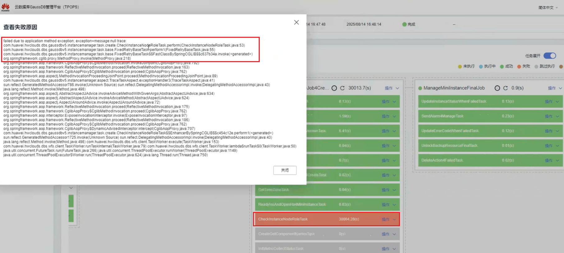轻量化平台(tpops)下发GaussDB实例报未被HA监控处理方法