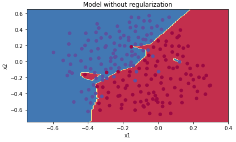 - 自带有L2正则化的网络,λ=0.7\lambda=0.7λ=0.7