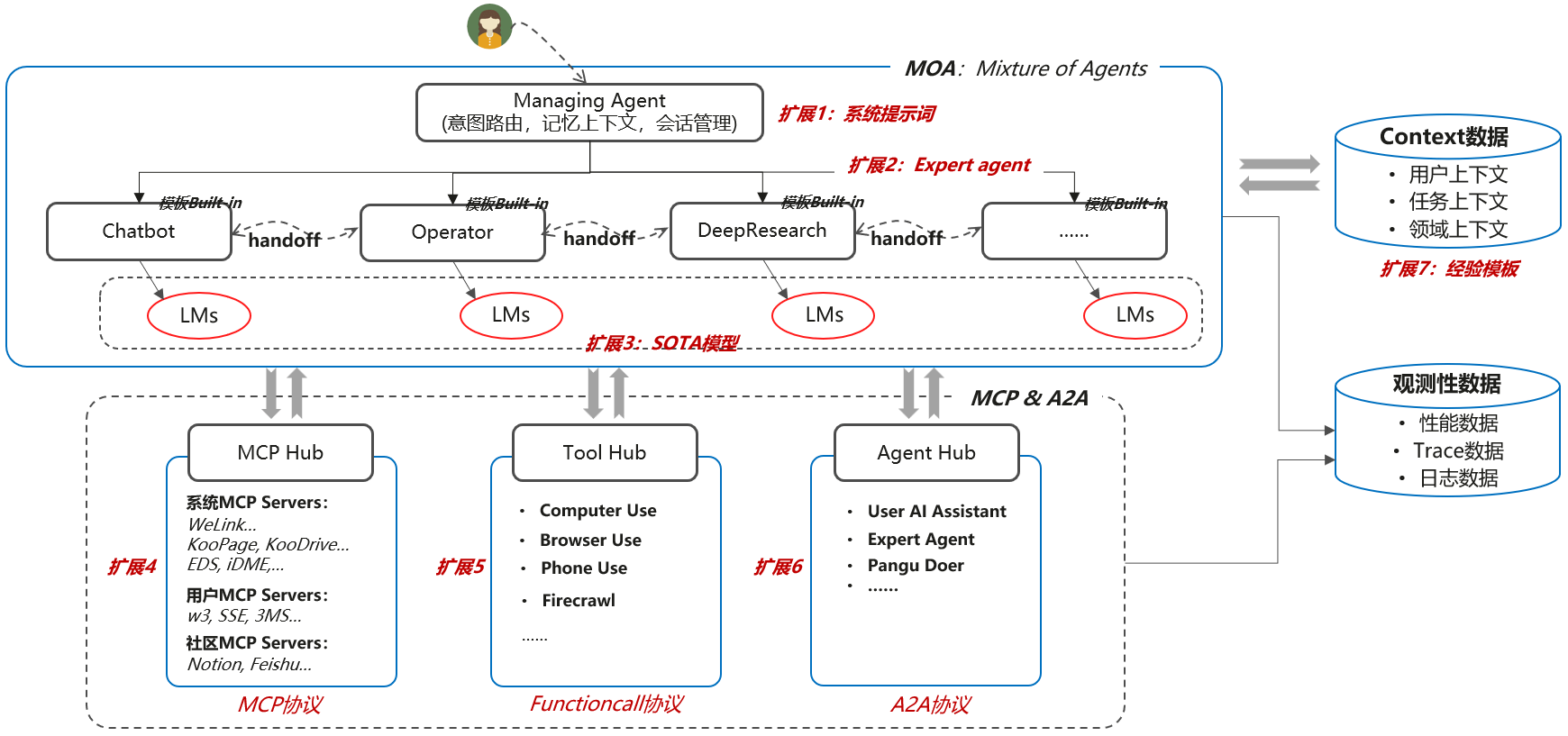 平台支持灵活拓展,兼容开源社区MCP及自主开发MCP服务的接入。
