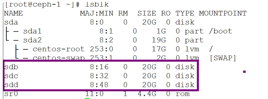 在mon新加两块磁盘,不分区,专门使用(前面讲过,如何增加磁盘)