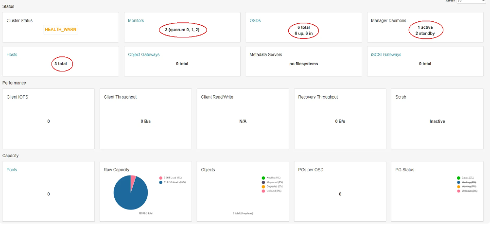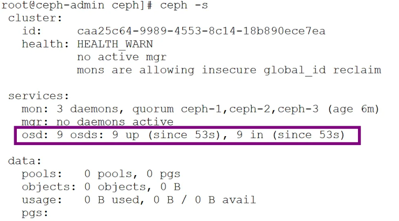 #通过查看 ceph 集群状态,验证上方OSD节点添加是否成功