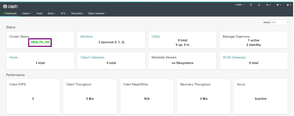 ceph config set mgr mgr/dashboard/server_addr 0.0.0.0 ceph config set mgr mgr/dashboard/server_port 18000