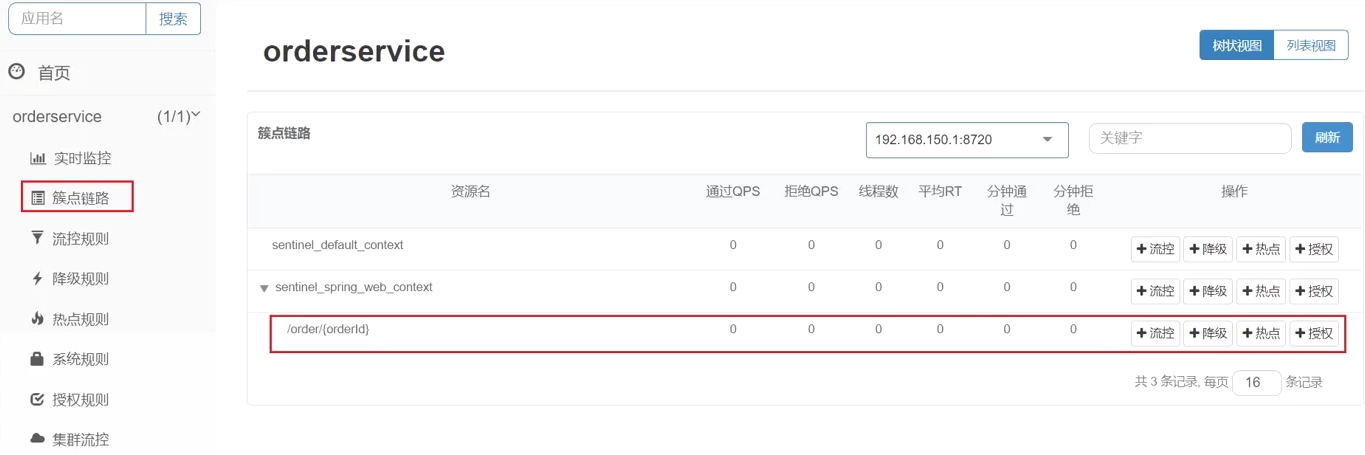 默认情况下sentinel会监控SpringMVC的每一个端点(Endpoint,也就是controller中的方法),因此SpringMVC的每一个端点(Endpoint)就是调用链路中的一个资源。