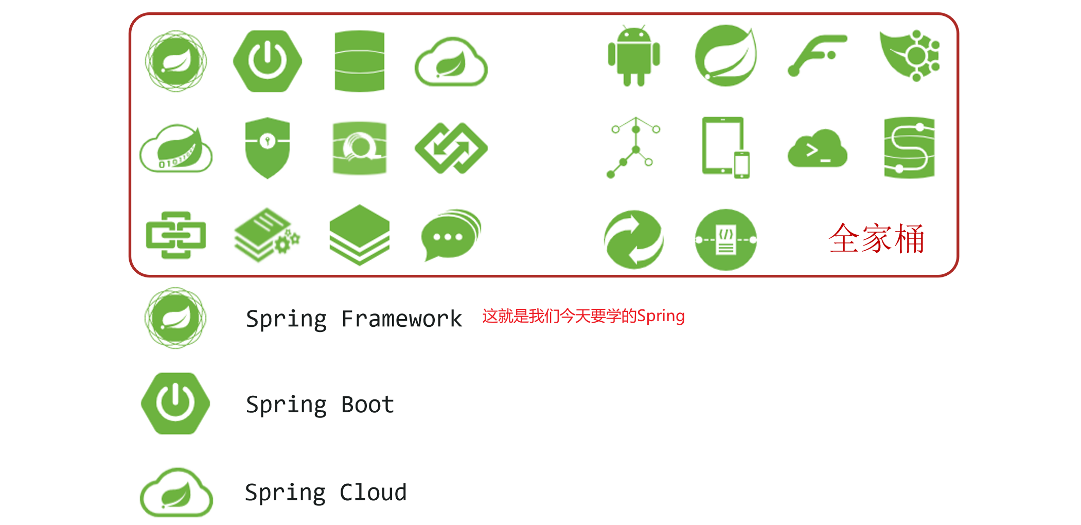 - Spring发展到今天已经形成了一种开发的生态圈,Spring提供了若干个项目,每个项目用于完成特定的功能。
