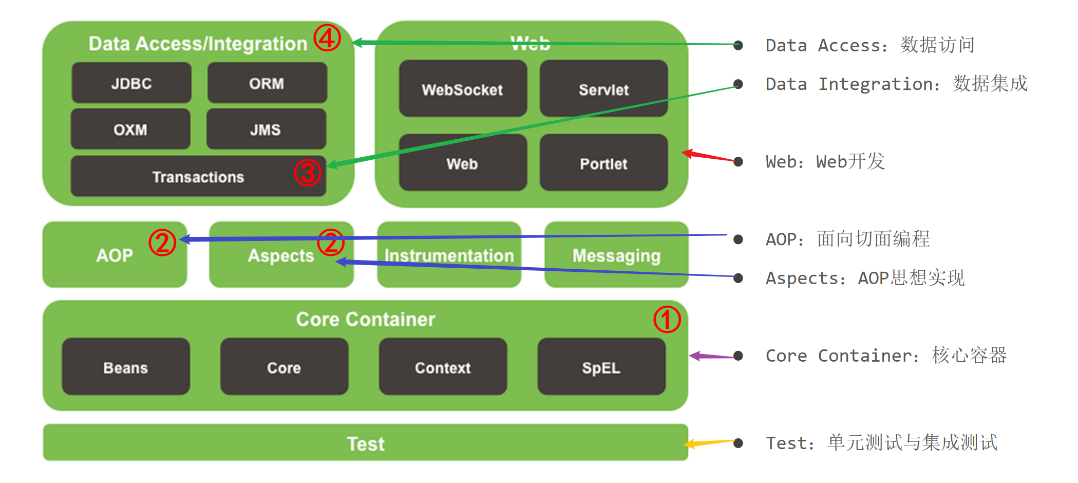 - Spring Framework是Spring生态圈中最基础的项目,是其他项目的根基