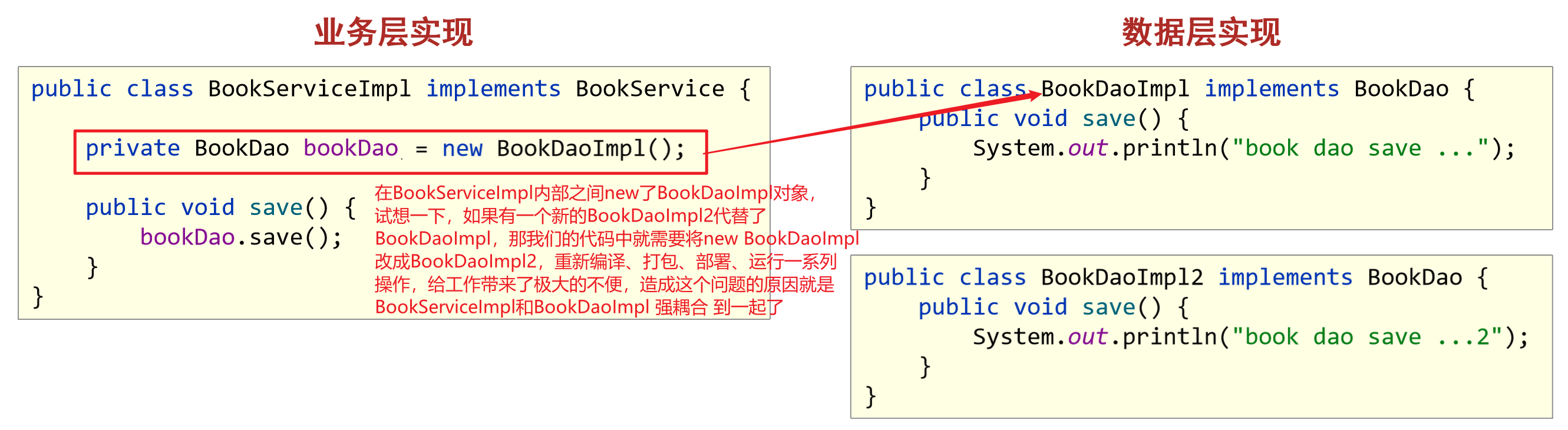 private BookDao bookDao; //【第一步】删除使用new的形式创建对象的代码