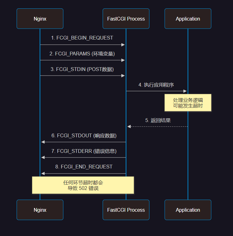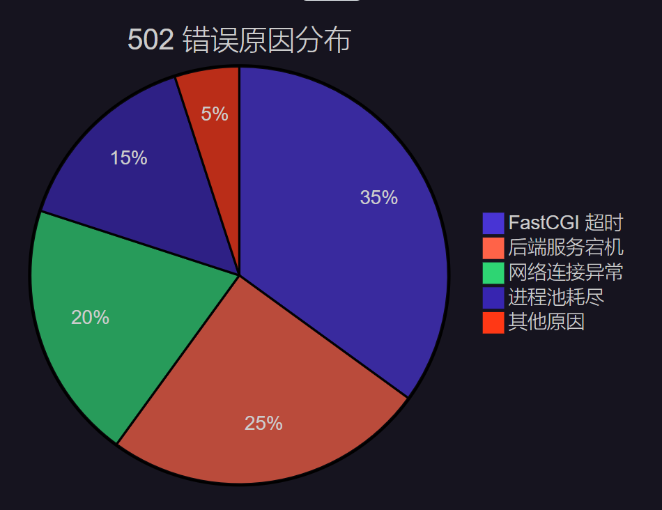 根据我的生产环境统计,FastCGI 超时是导致 502 错误的主要原因,占比达到 35%。这也是本文重点关注的问题。
