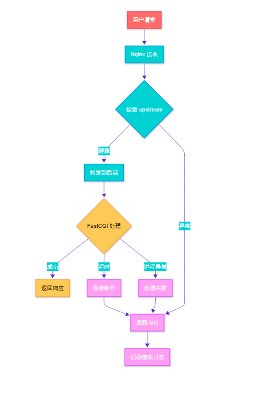 在这次复盘中,我将从最基础的 Nginx upstream 机制开始,逐步深入到 FastCGI 协议细节,再到超时参数的精确调优。我发现很多开发者对 502 错误的理解停留在表面,认为只是简单的服务不可用,但实际上它涉及到网络层、应用层、进程管理等多个维度的复杂交互。通过这次深度分析,我不仅找到了问题的根本原因,更重要的是建立了一套完整的 502 错误诊断和预防体系。