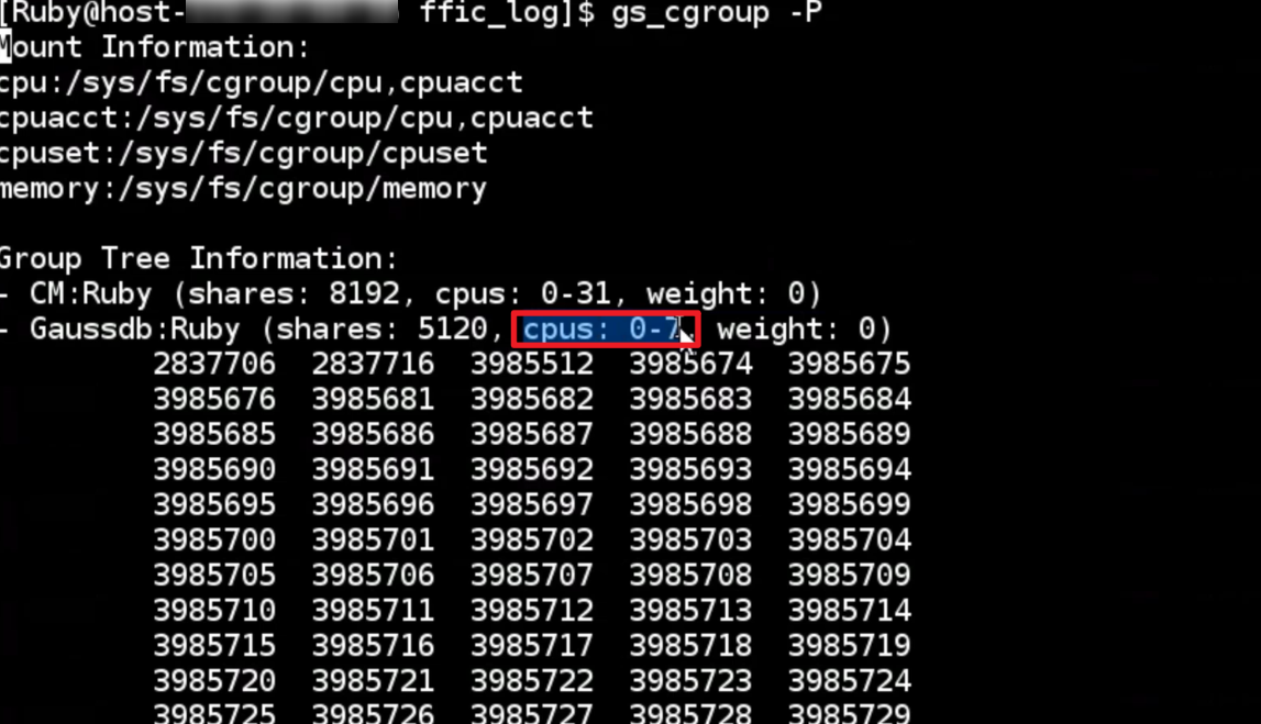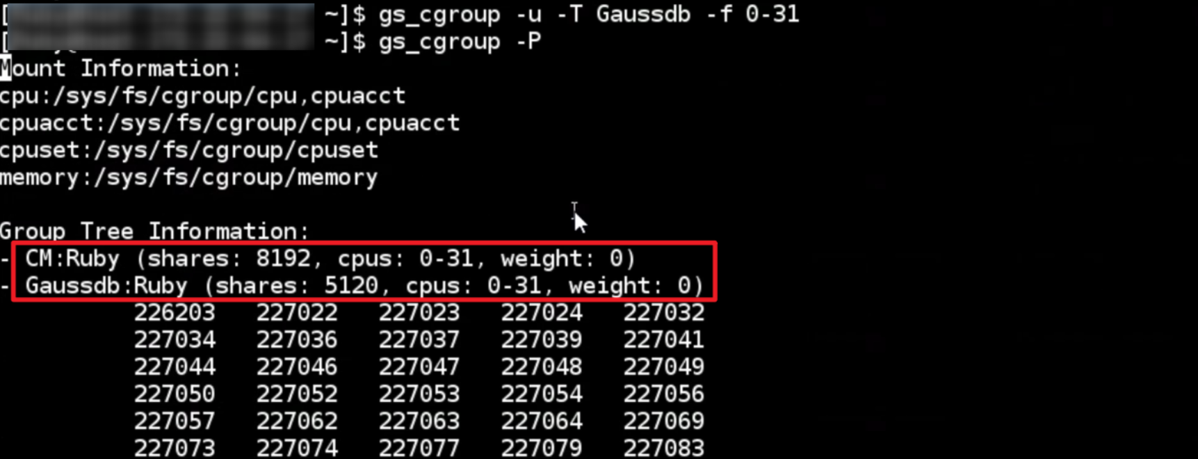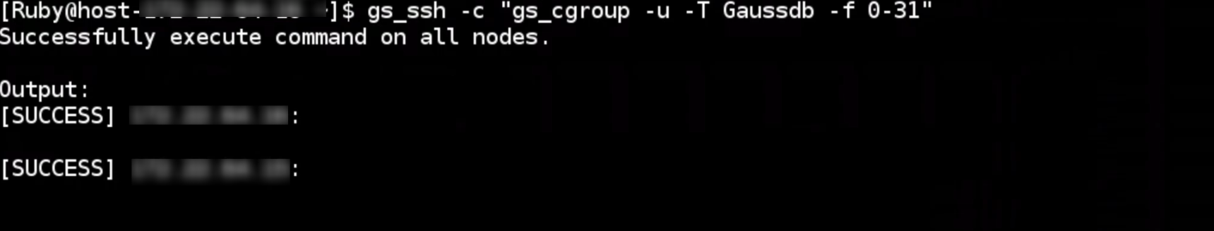gs_ssh -c "gs_cgroup -u -T Gaussdb -f 0-31"