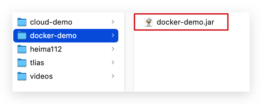 - 步骤2:拷贝课前资料中的docker-demo.jar文件到docker-demo这个目录