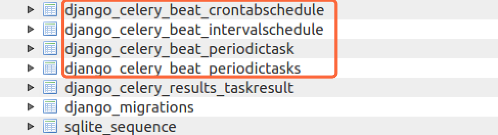 由于定时器信息存储在数据库中, 需要先生成对应表, 对diango_celery_beat执行迁移操作,创建对应表: