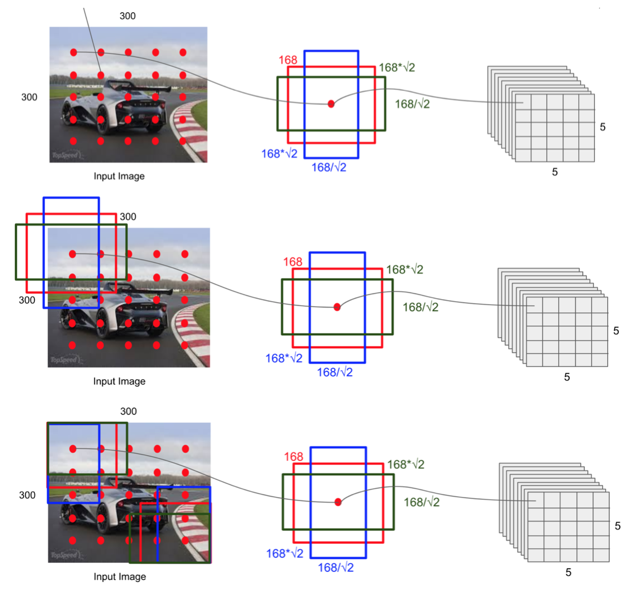 SSD中引入了Defalut Box,实际上与Faster R-CNN的anchor box机制类似,就是预设一些目标预选框,不同的是在不同尺度feature map所有特征点上是使用不同的prior boxes