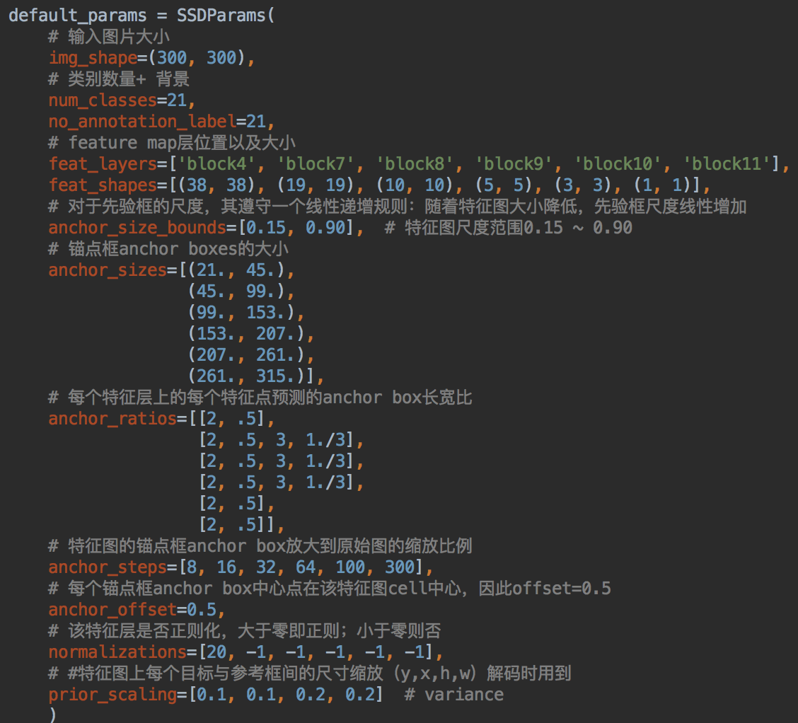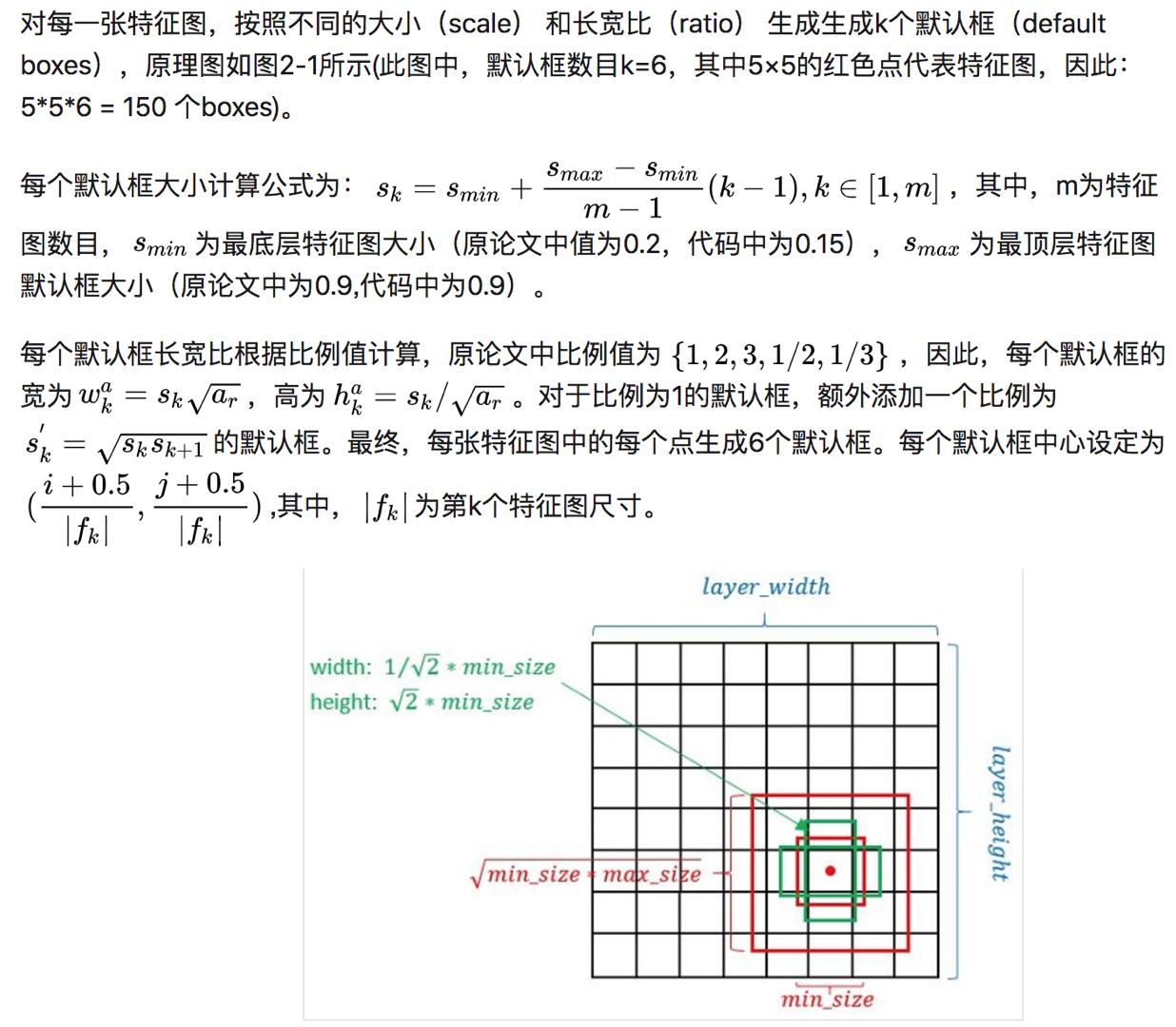 - 默认框的大小计算参数:s_min:最底层的特征图计算参数,s_max最顶层的特征图计算参数