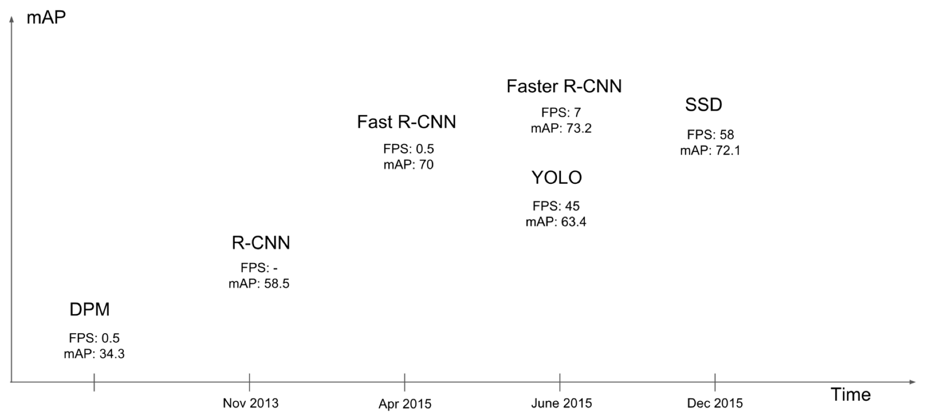 从图中看出SSD算法有较高的准确率和性能,兼顾了速度和精度