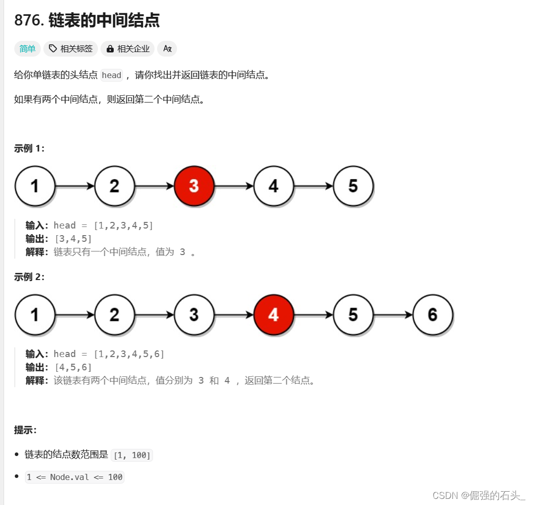 - 当链表为奇数个节点时,得到的是中间节点的位置
