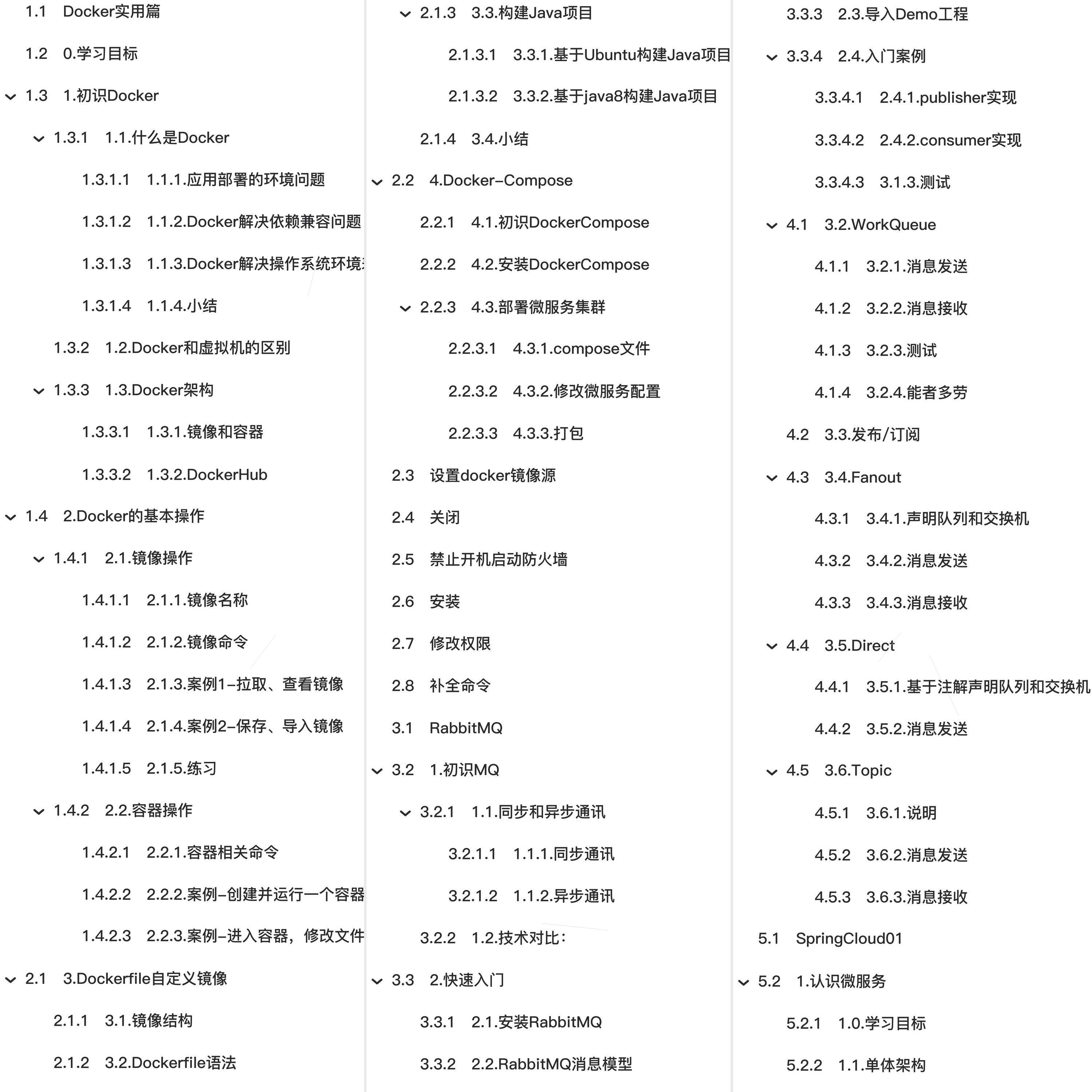 🏆🏆🏆教程全知识点简介:Docker实用篇 0.学习目标 1.初识Docker 1.2.Docker和虚拟机的区别 2.Docker的基本操作 2.1.镜像操作 2.1.3.案例1-拉取、查看镜像 2.1.5.练习 3.Dockerfile自定义镜像 3.3.构建Java项目 3.4.小结 4.Docker-Compose 4.3.部署微服务集群 4.3.1.compose文件 4.3.3.打包 设置docker镜像源 关闭 禁止开机启动防火墙 安装 修改权限 补全命令 RabbitMQ 1.初识MQ 1.1.同步和异步通讯 1.2.技术对比: 2.快速入门 2.2.RabbitMQ消息模型 2.3.导入Demo工程 2.4.入门案例 2.4.1.publisher实现 3.1.3.测试 3.2.WorkQueue 3.2.1.消息发送 3.2.4.能者多劳 3.3.发布/订阅 3.4.Fanout 3.4.1.声明队列和交换机 3.5.Direct 3.6.Topic 3.6.1.说明 SpringCloud01 1.认识微服务 1.1.单体架构 2.服务拆分和远程调用 2.1.服务拆分原则 2.3.实现远程调用案例 2.3.1.案例需求: 2.3.2.注册RestTemplate 3)启动多个user-service实 4.Ribbon负载均衡 4.1.负载均衡原理 4.2.源码跟踪 1)LoadBalancerIntercepor 3)负载均衡策略IRule 5.Nacos注册中心 5.1.认识和安装Nacos 5.2.服务注册到nacos 1)引入依赖 2)配置nacos地址 3)重启 5.3.服务分级存储模型 5.3.2.同集群优先的负载均衡 5.4.权重配置 Nacos安装指南 1.Windows安装 1.1.下载安装包 1.2.解压 1.3.端口配置 1.4.启动 1.5.访问 2.Linux安装 2.1.安装JDK 3.Gateway服务网关 3.1.为什么需要网关 3.3.断言工厂