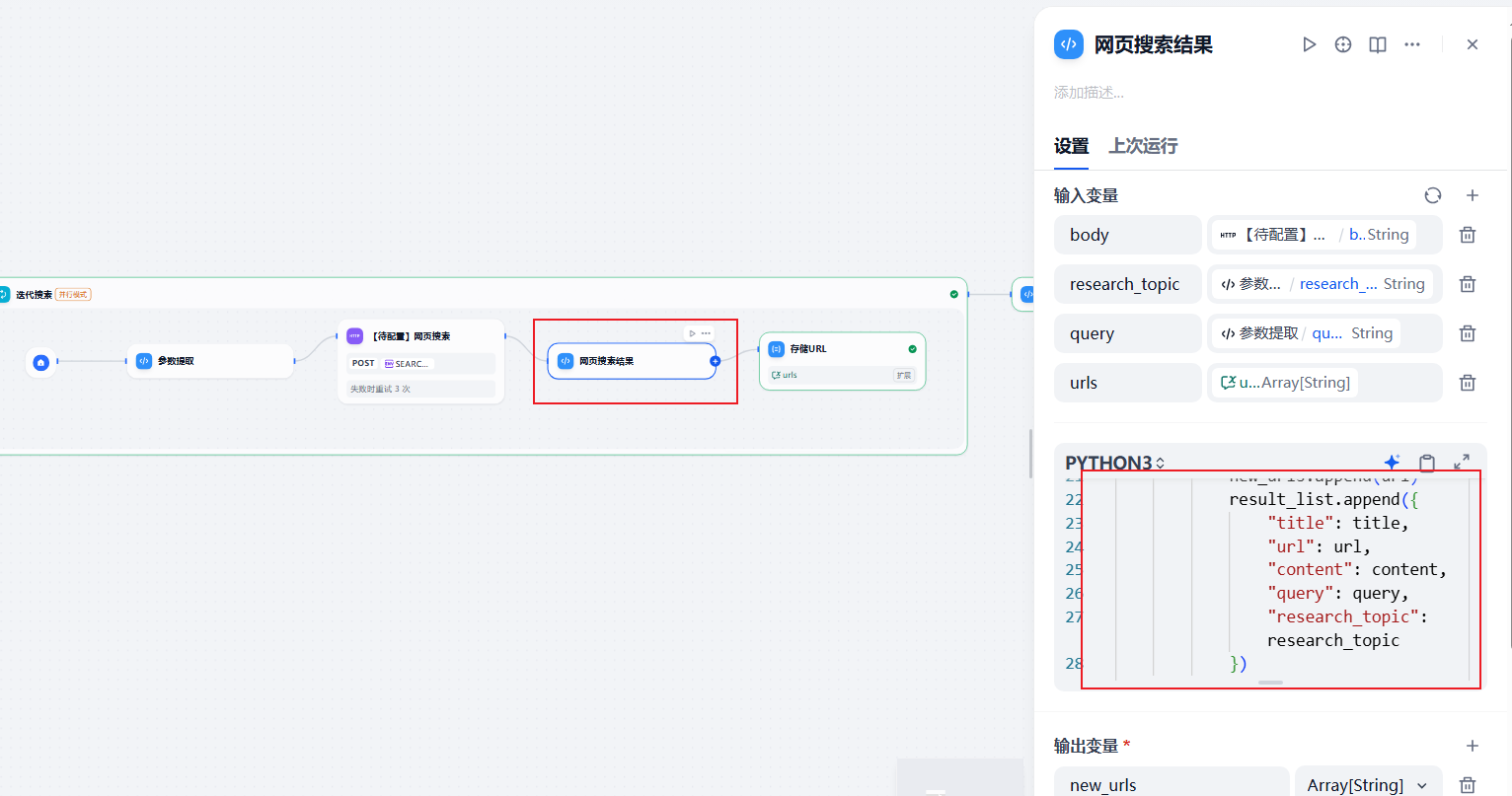 修改工作流网页搜索结果节点