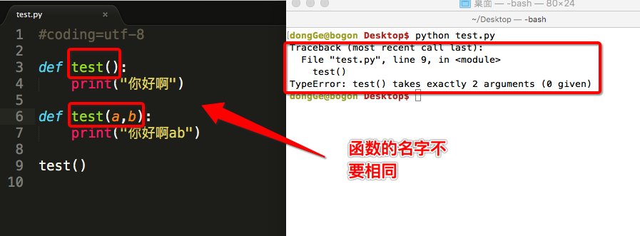 - 还有一点 不仅要避免函数名之间不能相同,还要避免 变量名和函数名相同的,否则都会出现问题
