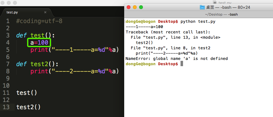 在函数外定义的变量,可以在所有的函数中使用(全局变量)