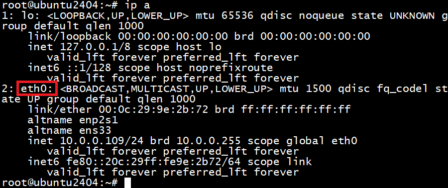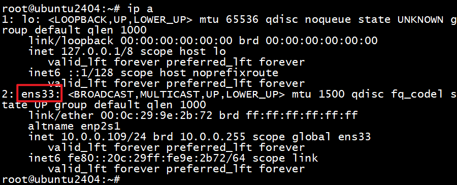 以ubuntu2404为例,默认网卡名称如下