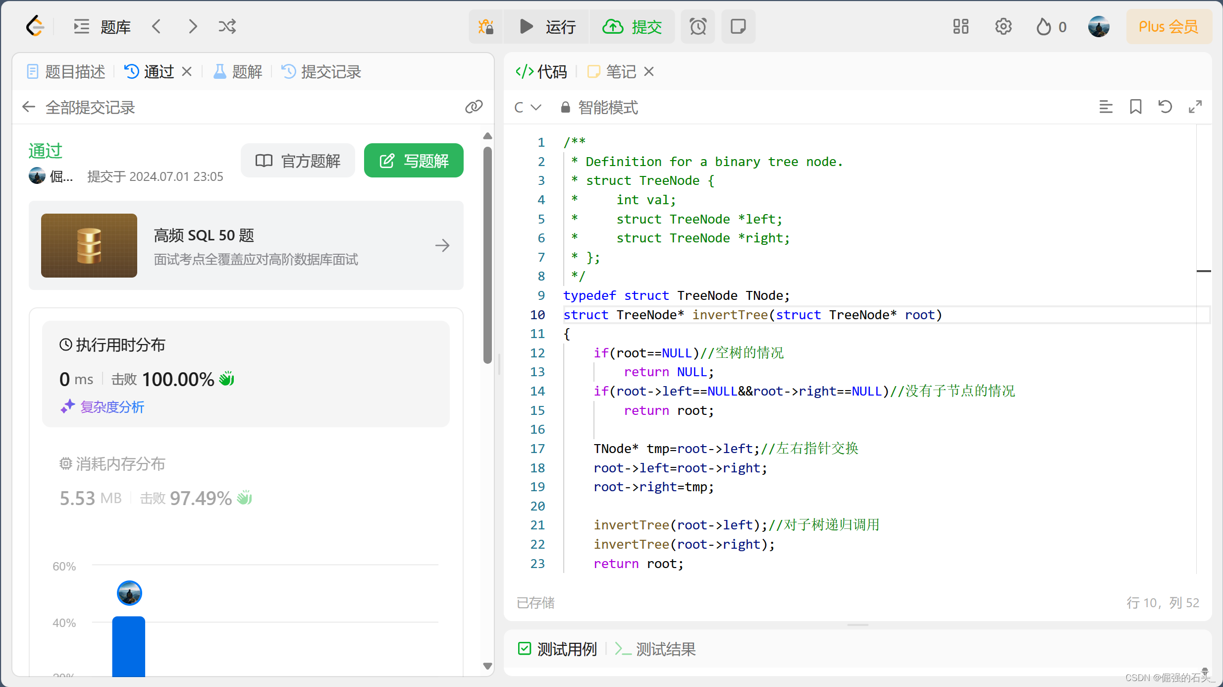 翻转二叉树(也称为二叉树的镜像)是指对二叉树进行遍历,并交换每个节点的左右子树。通过递归调用可以快速简单的完成任务