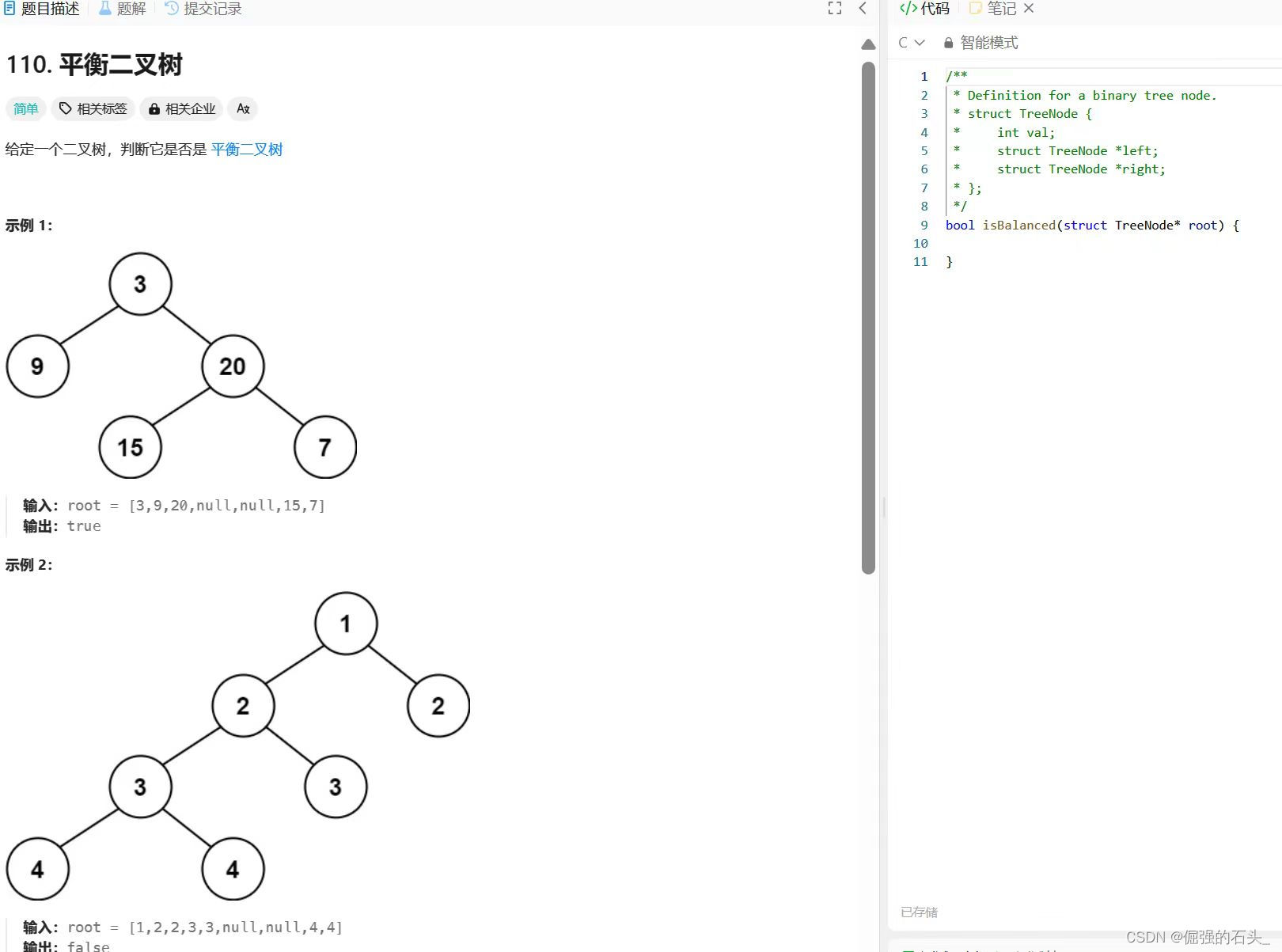 bool isBalanced(struct TreeNode* root) //判断是否平衡
