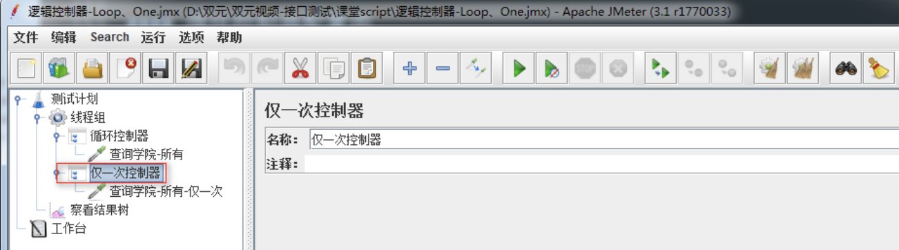 基于案例3循环控制器中执行10次(查询学院-所有),执行1次(查询学院-指定)