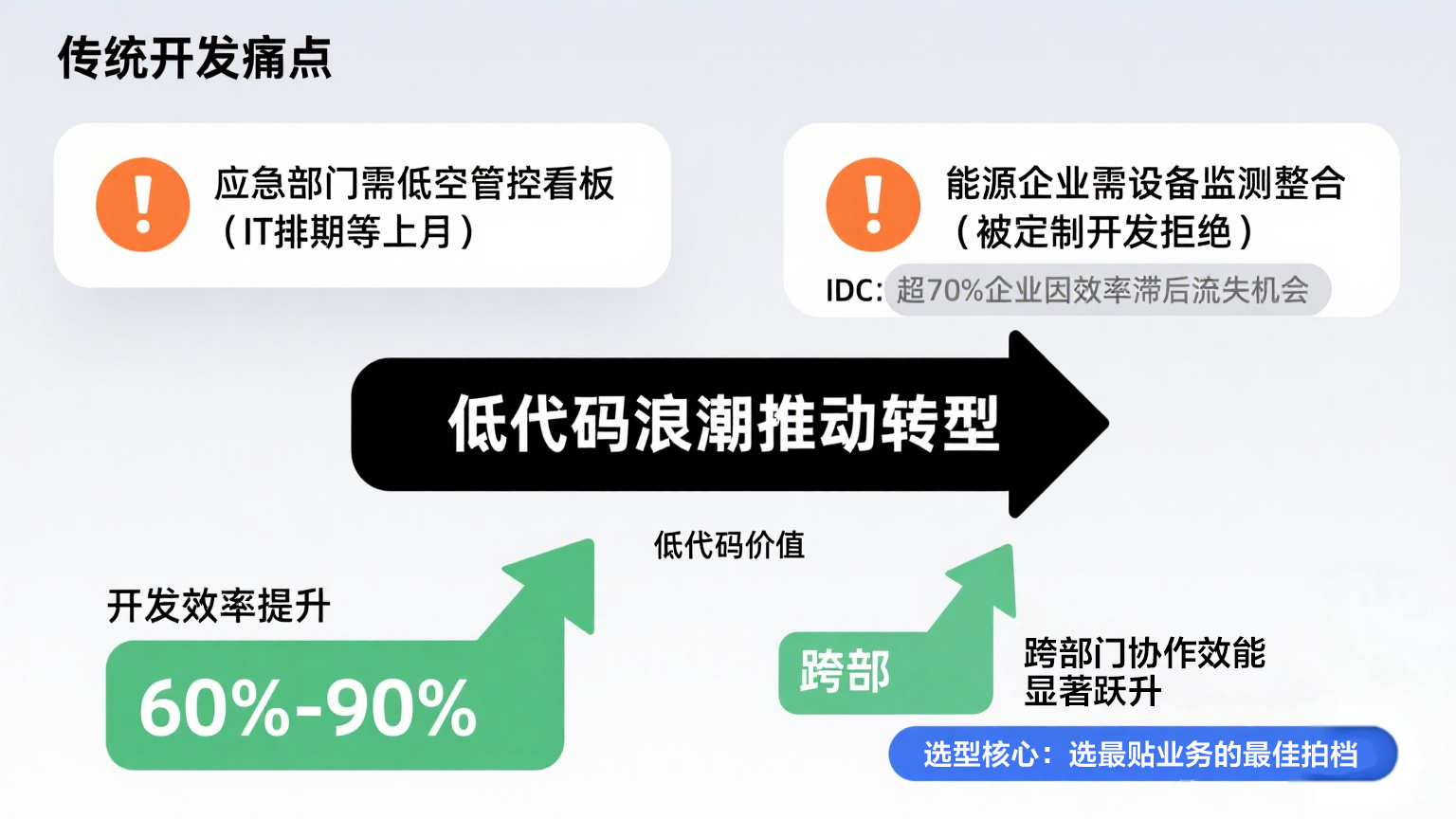 低代码选型的终极答案,永远藏在你的业务场景里:让技术适配业务,而非让业务迁就技术,才能让低代码真正成为数字化转型的 “增长引擎”。